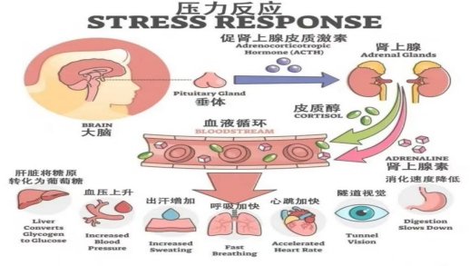 • 心理应激的生理损伤:长期处于压力状态时,身体会持续分泌肾上腺素、皮质醇等“压力激素”。这些激素会导致血管收缩、心率加快且节律紊乱,就像让汽车发动机一直高转速空转,长此以往会大幅耗损心脏功能,加速血管硬化,提升冠心病、心律失常等疾病的发病风险。