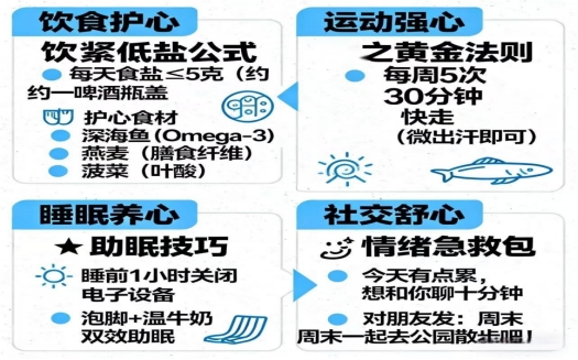 三、实用双心养护指南:吃、动、睡、聊,四管齐下