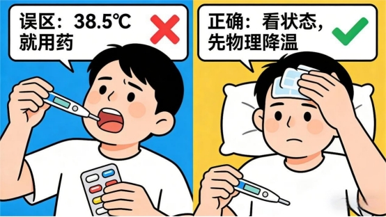 ❌ 误区 2:发烧到 38.5℃必须吃退烧药?